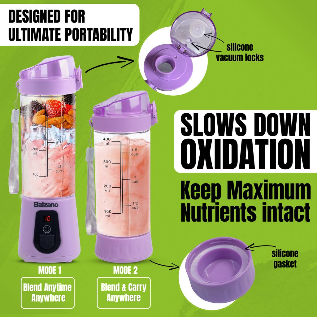 • • DESIGN & ENGINEERED IN ITALY: The Balzano Portable Blender is carefully designed and engineered to simplify all your Blending needs. Balzano is an Italian premium brand with 115+ years of experience in Home & Kitchen. Experience the Italian craftsmanship that will fulfill your Blending needs